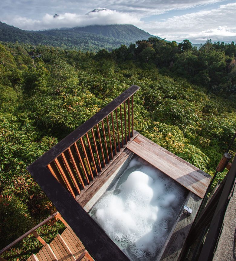 Our tranquil getaway in Bali's mountains offers breathtaking panoramic views, open-air baths under the stars, and the warmth of a cozy fireplace. Embrace the ultimate secluded hideaway with pristine night skies visible through the unique stargazing window above your bed, designed to bring the cosmos closer to you.